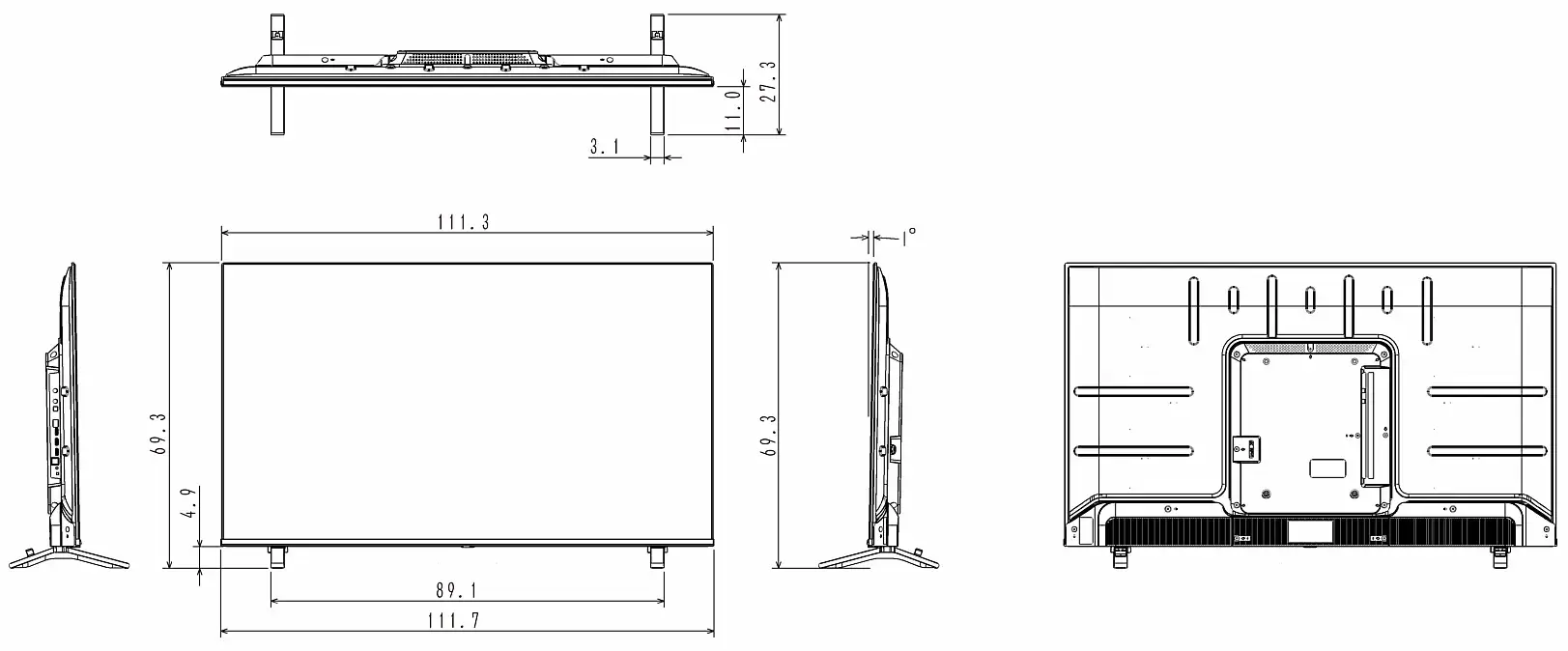 外形寸法(スタンド付き) 幅×高さ×奥行 | 111.7cmx69.3cmx27.3cm |