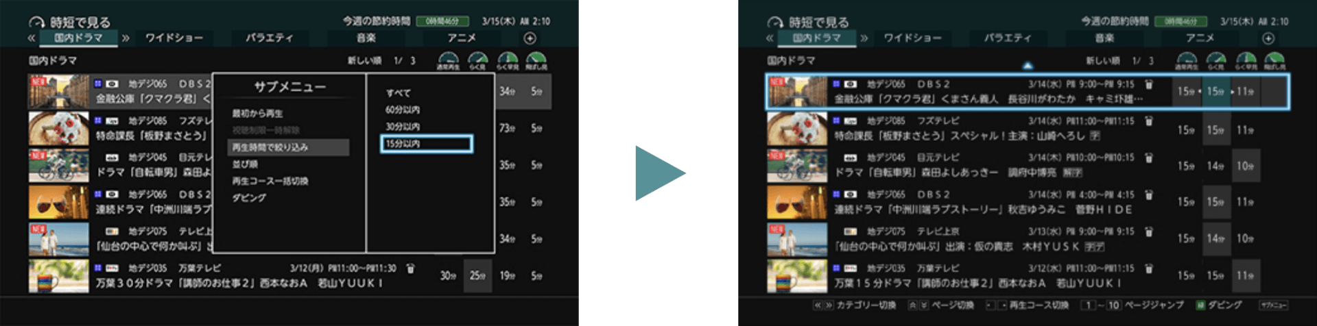 「らく見」「らく早見」で自動スキップする部分の右下に「時短中」マークを表示しながら早送りします。
