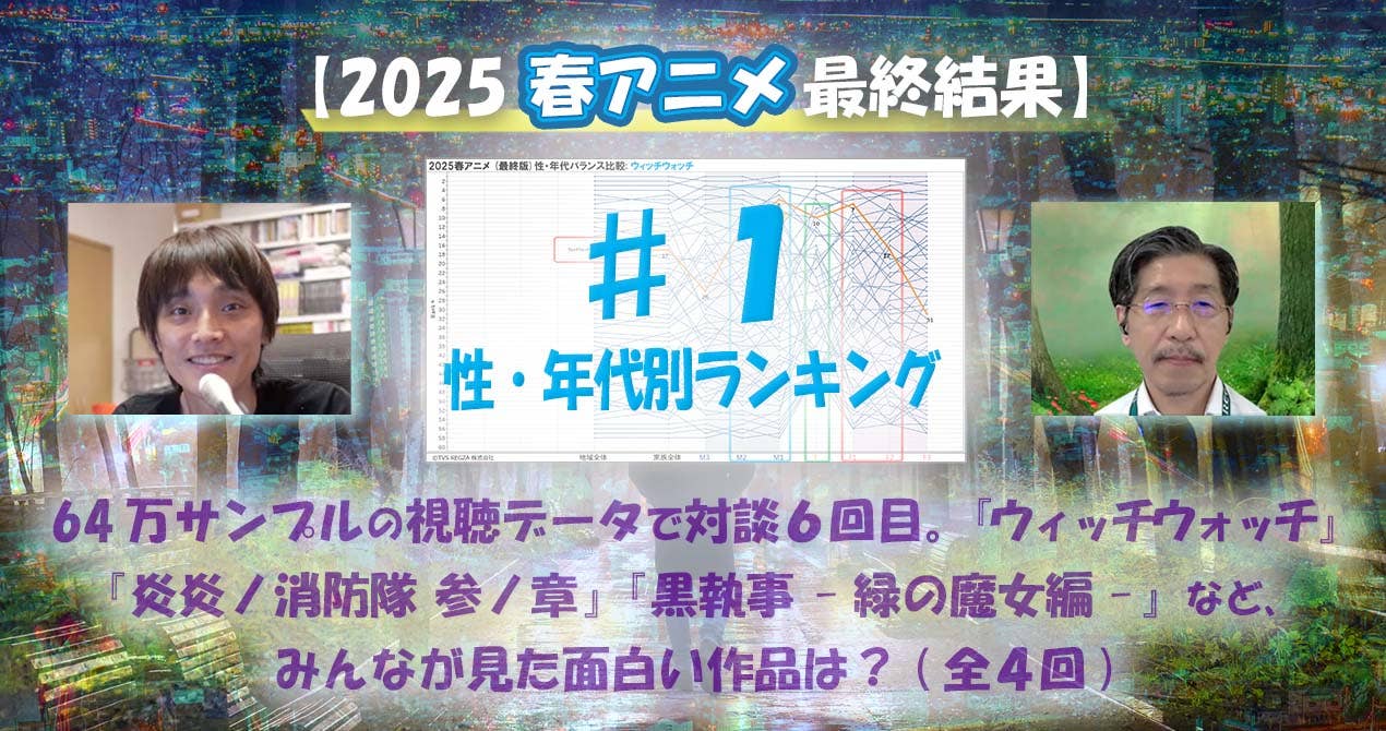 2025夏アニメの中間集計結果を用いて、ニッポン放送の吉田アナウンサーとレグザの片岡が、ネットで話題の作品から、話題になっていなくても実はよく見られている作品まで、性・年代別のランキング結果ごとに作品を紹介。今からでも配信などで見てほしい、という応援のためにやっているイベントです。