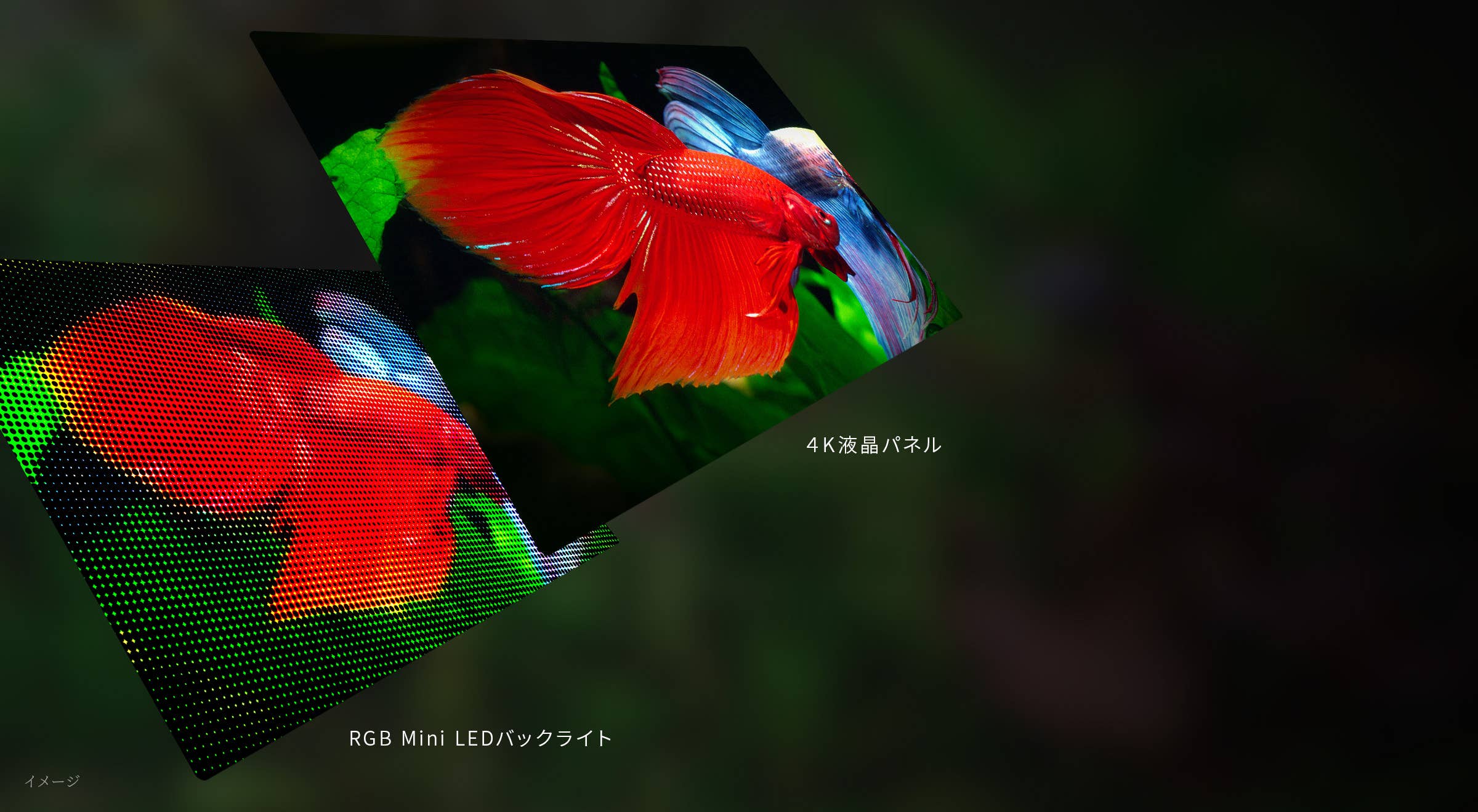 レグザエンジンZRαがAIを用いて緻密に映像解析し、RGBバックライト液晶パネルの色表現力を最適化。