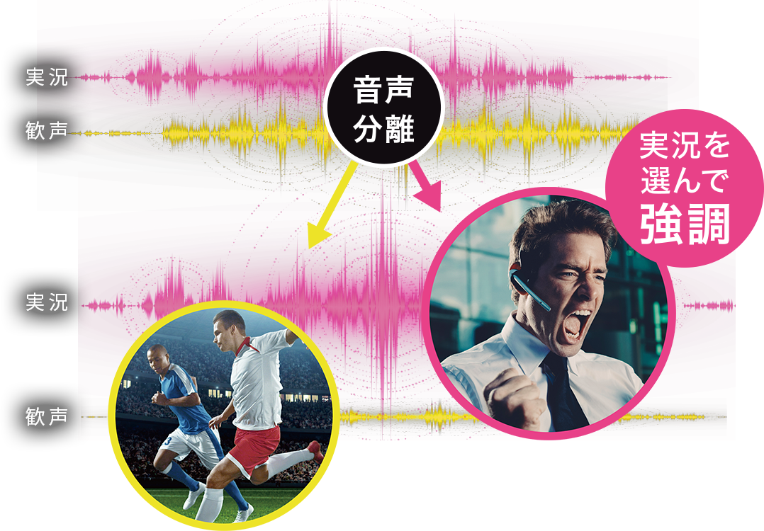 AIによるシーン別高画質処理で自然光や反射光なども判別し高画質化。自発光のシーンでは鮮やかな輝きを再現し、反射光のシーンでは、自然な色合いで階調滑らかに再現。判別したシーンに応じてレグザ独自の映像信号処理とパネル駆動を行いその場にいるようなリアルな光景を再現。