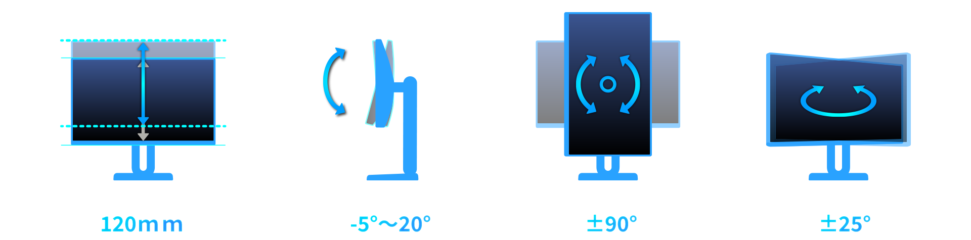 上下チルト、スイベル、回転、高さ調整に対応しており、ご自身で最適な視聴位置に調整し、ゲームや動画を快適にお楽しみいただけます。